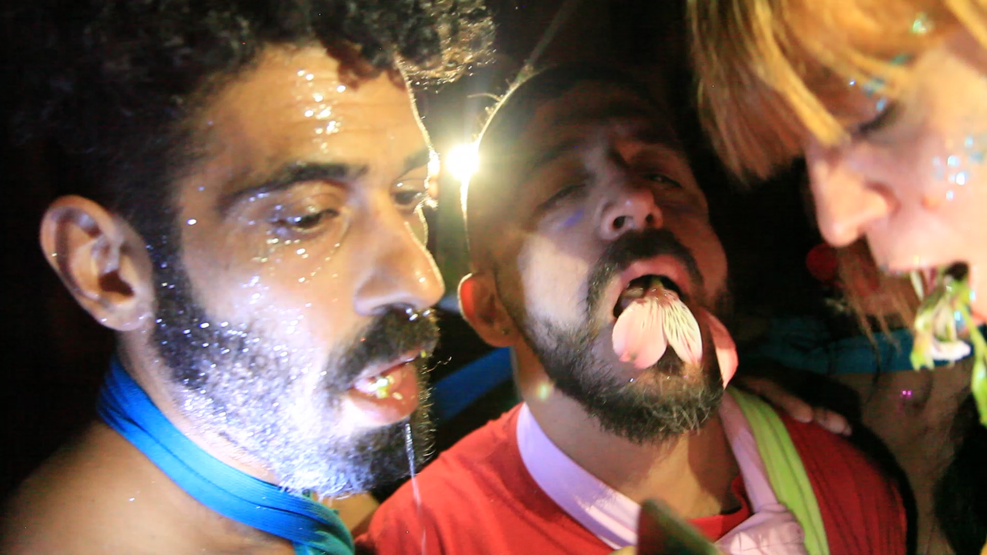The work is based on a speculative fabulation written by V Franck-Lee Alli-Tis especially for the project. It explores the conditions of queer joy, loss, vulnerability, global warming and the bodily aspects of language. The performance is being set in the ruins of a former oil and wine factory from 1922. It shows rituals of pleasure and intimacy during the nocturnal encounters that the collective of lovers enacts when they are able open their mouths as soon as it gets dark. The performers' movements and poses are inspired both by representations of the Eleusinian Mysteries and by the queer cruising culture. The vocal performance is based on the practice of deep listening developed by composer Pauline Oliveros.